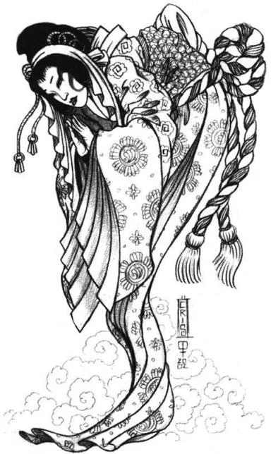 Benten was a woman of indescribable beauty, who used to held a gleaming biwa in her hands which she could calm any mortal's soul. Her gown seemed woven from the roiling sea. She was the only female among the Seven Fortunes, but appeared to be their spokesperson on the rare occasions when they appeared together. [2]