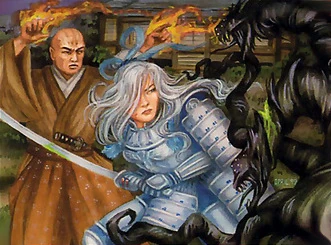 The tracks Rekai found sent her toward Nikesake, near Isawa Mori. She was seeking the son of the commanding officer, Kakita Sutebu. Sutebu, supposedly an artist, was, in truth, a Kolat. When he would leave the city for several days he would tell people that he was going to the forest to get inspiration for his paintings. During the night a sudden blizzard covered the area and Sutebu was supposed missing or even dead. Rekai went to find the man in the middle of the blizzard, but came upon a monk named Ikudaiu instead. Ikudaiu informed her that Sutebu was already dead, as was the ronin messenger Sutebu was trying to meet. Both men had been hunted by minions of the Shadow. [11] Half of the Tao was presumed lost [12] when the ronin who carried it was hunted down by the Lying Darkness. The scrolls were scattered across a cliff, and eventually fell into the sea. [13] Rekai was instructed to take the package Ikudaiu was carrying and guard it. The package contained the other half the Tao of Shinsei. Ikudai felt that the Shadow was hunting him, and Rekai had to take the Tao and flee to safety. [11]