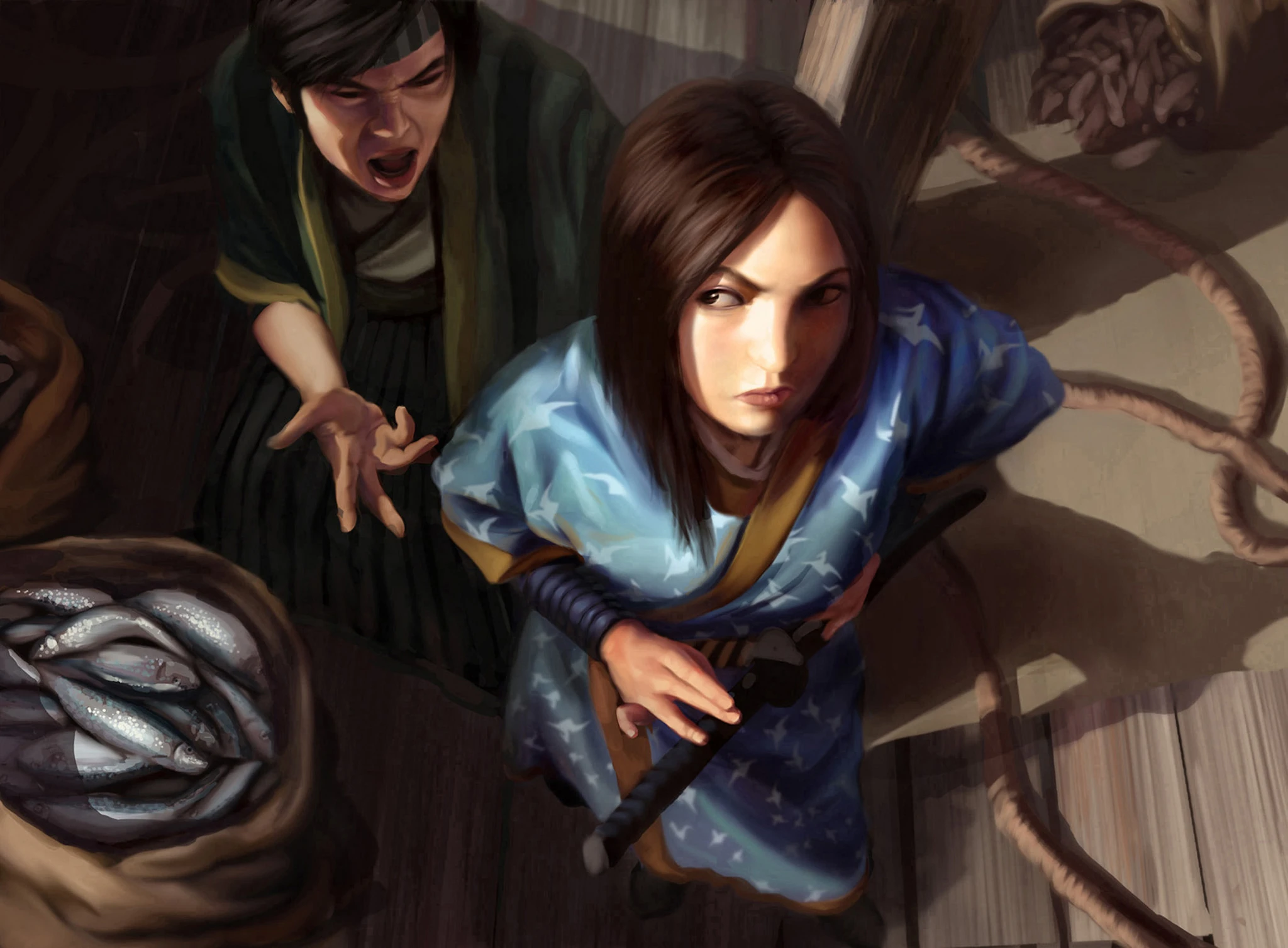 The Jade Champion Asahina Nanae met Ji-Yun and Hakuseki, telling that a long-standing conflict between the dragon P'an Ku and the Fudo cult had exacerbated conflicts in the Colonies, as the Siege of the Second City, or the Mantis-Crane War in the Colonies. The Jade Champion informed to Ji-Yun to investigate to what extent, if any, these forces might be active in the Empire. Hakuseki delegated the search of the Dark Naga on her subordinates, as P'an Ku's Madness had to have her full attention. Nanae also reported the peaceful Asahina had permitted the Fudoist to conduct their research in the Empire despite the cult had been declared a heresy and chased by the Brotherhood. Hakuseki prepared a group among the Ikoma Wardens, the Tsuruchi Magistrates, the Asako Inquisitors, and the Soshi Magistrates. Hakuseki alongside her finest magistrates, Ikoma Natsu, Sutigu, and Yoritomo Minori, and Bayushi Kahoku as an additional member, sought the location of a Fudoist temple in the deepest portions of the Spine of the World Mountains, where the range divided the Crane holdings into two. [9]