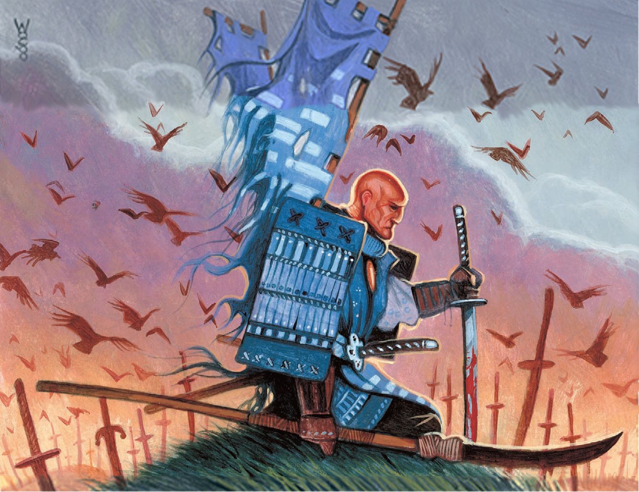 Kuwanan fought at the Battle of Oblivion's Gate. He was forced to kill his own Daidoji guard after they became faceless minions possessed by the Shadow. [51] He was one of the thousand samurai who reached the gates of Volturnum. [52] Despite the festering Taint that took his right arm and turned it into a twisted mass of flesh, he stood beside the united armies on the day that the Empire stood against the Shadow and refused to fall. [53]