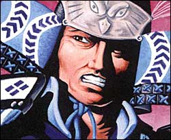 During Kuwanan's time at the Akodo school he met Matsu Hiroru, the brother of the Matsu Daimyo. The two disliked each other from the moment they met, and as each studied under separate sensei, they frequently met in mock battles. In one of these trials Hiroru "mistakenly" broke Kuwanan's arm, and although Hiroru apologized, Kuwanan could see through the hollow apology. There was nothing he could do, however, other than politely accept the apology. Training continued with more pranks and taunting from Hiroru, but Kuwanan could do nothing but ignore them. At the time of their gempukku Kuwanan was engaged to be married to Shiba Nosuriko, a beautiful young maiden. The night before their wedding she hung herself in her chamber, leaving no note or reason for her act. Kuwanan believed the fault lay with Hiroru, who had never relented in his advances toward the girl. Kuwanan finally had enough reason to challenge Hiroru, but when he went to the Matsu's room he was nowhere to be found. Kuwanan never got his revenge. [6] Kuwanan was right. Hiroru had followed Akodo Kage's orders, angered after a Crane victory against the Lion, and had begun a romantic liaison with Nosuriko. [7]