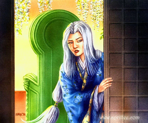 Shizue was a lovely girl with bright grey eyes and long white hair. She was quick to smile and laugh, and her voice could convey a tremendous depth of emotion. Due to her crippled foot her steps were slow, but rhythmic, and thanks to some of the dancing she was taught by Teinko, she moved quite gracefully. [3]