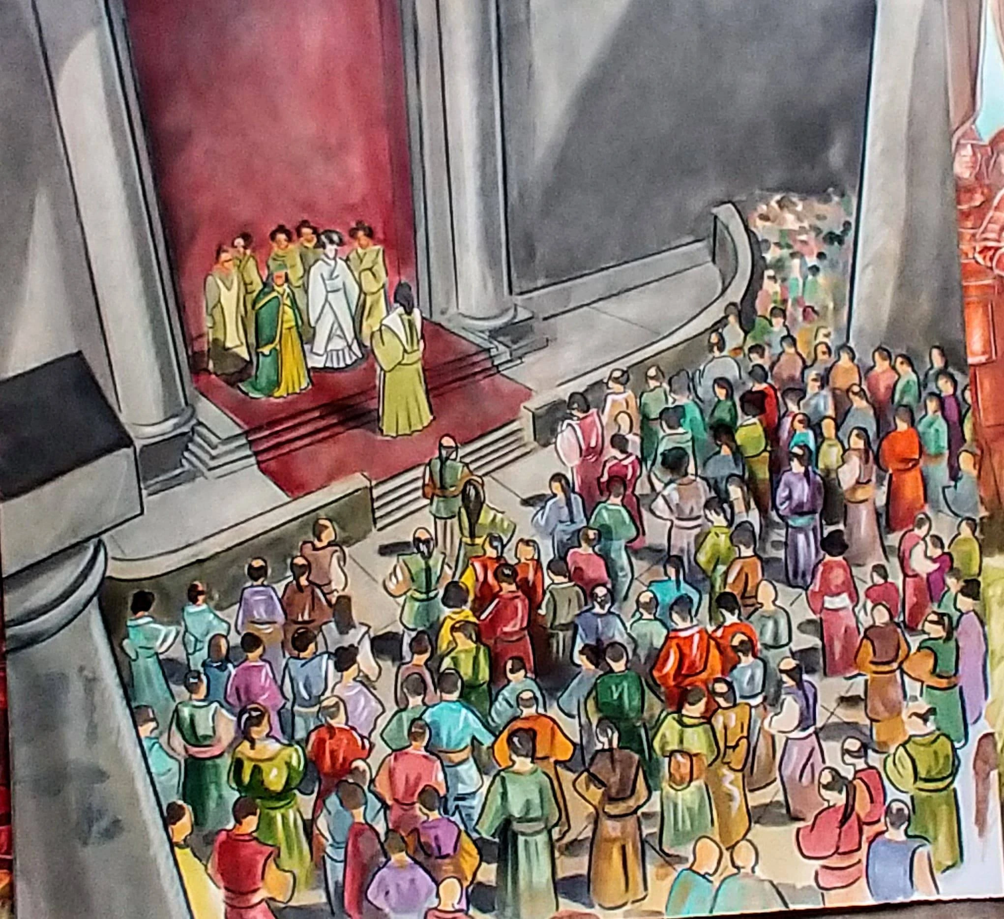 The Kami realized that the mortals of the world to which they fell needed guidance and organization. Hantei saw the people of Rokugan as children who should be taught the wisdom required to flourish. The Kami realized they were just the ones for the task. The siblings organized a tournament, and the victor would become the ruler of the newly formed Emerald Empire of Rokugan and would also be in charge of his or her other siblings and their mortal followers. Hantei was the last contestant in the Tournament of the Kami. Besting his brother, the great warrior Akodo, Hantei proved his worth over his siblings and thus became the first Emperor of Rokugan, founding what would become the long-lived Hantei Dynasty. [3]