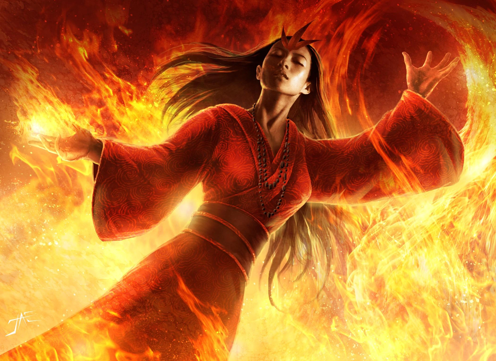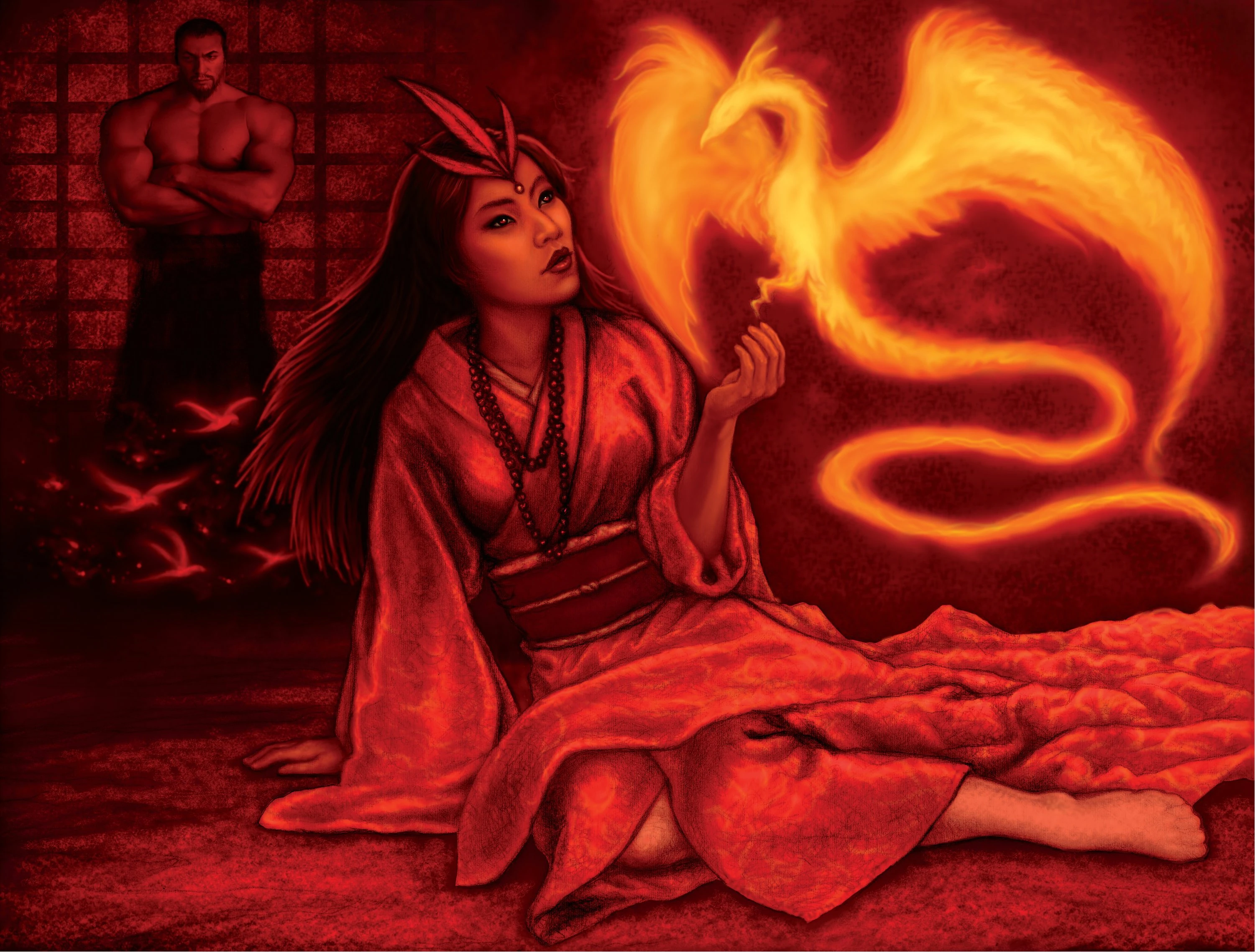 Born to a minor Isawa line, Ochiai did not show strong ability with the kami at first. She attended a minor temple of the Isawa Shugenja school, filling her time with dancing, painting, and other arts. [2] After the deaths of their parents, Nakamuro chose to allow Ochiai to choose who she would marry, as he could not bear to see her shackled in a loveless marriage. It was her focus on her arts which led her to discover her gift for incredible precision. She found that while others might be able to turn a tree to ash she could target and incinerate individual leaves without as much as scorching those around it. Even the great sensei Isawa Sachi could not help but be impressed. [1]