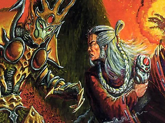 Even as a child, he displayed an incredible talent for summoning the kami. He began training with the Phoenix as an Ishiken at a very early age, and underwent his gempukku as the youngest shugenja in record to achieve that distinction. [4] On the day of his gempukku, Sezaru killed an oni sent to murder him. [5] A group of Bloodspeakers had attacked, summoning an oni to slay Toturi's son. The young Sezaru destroyed the demon single-handedly, and then attended to the maho-tsukai as well. [6] Sezaru took the nickname the Wolf since that day, [7] and always carried a curved silver dagger with him. The dagger was filled with the purity of Void. His Isawa mentors gifted him with a mask which was the symbol of Sezaru's lineage - child of the Son of Heaven and the Oracle of the Void. [8]