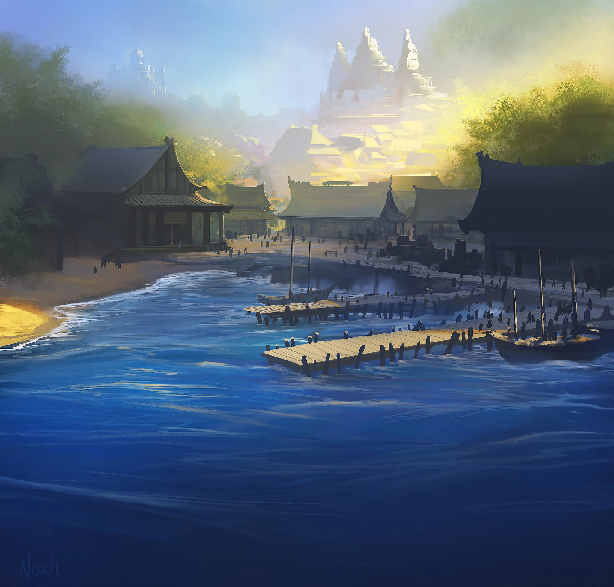 Kalani's Landing was the first place of the Ivory Kingdoms where the Mantis expedition led by Moshi Kalani landed in 1172. Moshi Higoro was the Mantis cartographer that drew the first rokugani maps of the area and he decided which names would be written. [2] In the late 12th century it had become a major town of over 5,000 people. The town was originally walled but had long since sprawled beyond those defenses. [3]