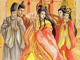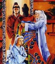 After the reign of Hantei XVI the kimono became more standardized, and tghe previous style of dress known as hitatare began falling out of favor. [4]