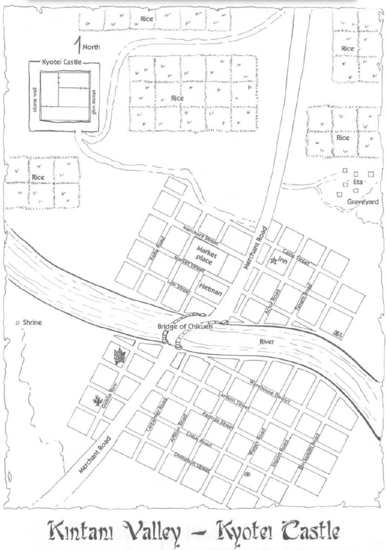 Kintani Valley was a strategic point that menaced the Lion in the struggle for control of northern Rokugan, as it would be used as a staging point for a major offensive to have free rein to march across the plains of the central Lion territories. In 437 the Lion Generals decided to create a fortified keep and a series of outbuildings, originally known as the Northern Fortress. In 595 Kintani Valley already had become a major source of food and revenue for the Crane, forcing the Lion to build-up their forces in the region. The small settlement would eventually become the city of Toshi Ranbo. [3]