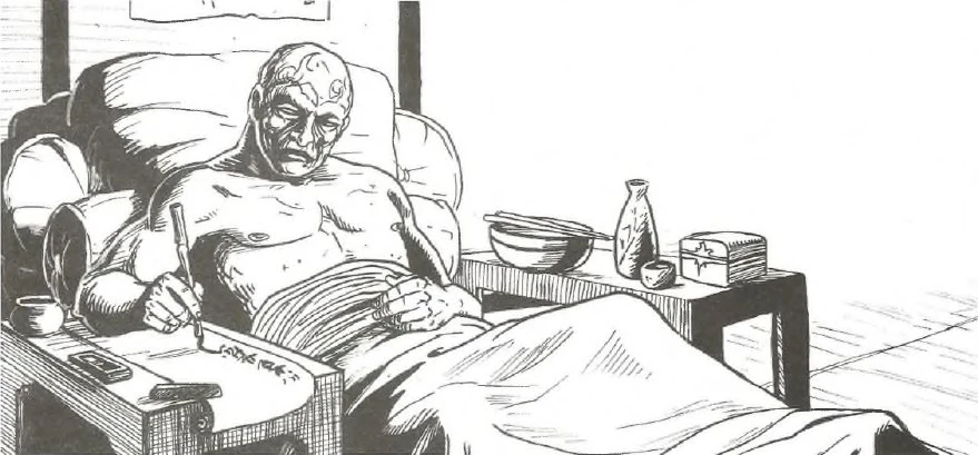 Kisada's wounds took their toll upon him, refusing to heal, even when he was treated by the best physicians in the Crab Clan. Realizing he could not lead his clan from a deathbed, Kisada invested his authority in his son and heir. Though constantly under a physician’s care, Kisada was a storehouse of military knowledge who was a great help to Yakamo. [54]