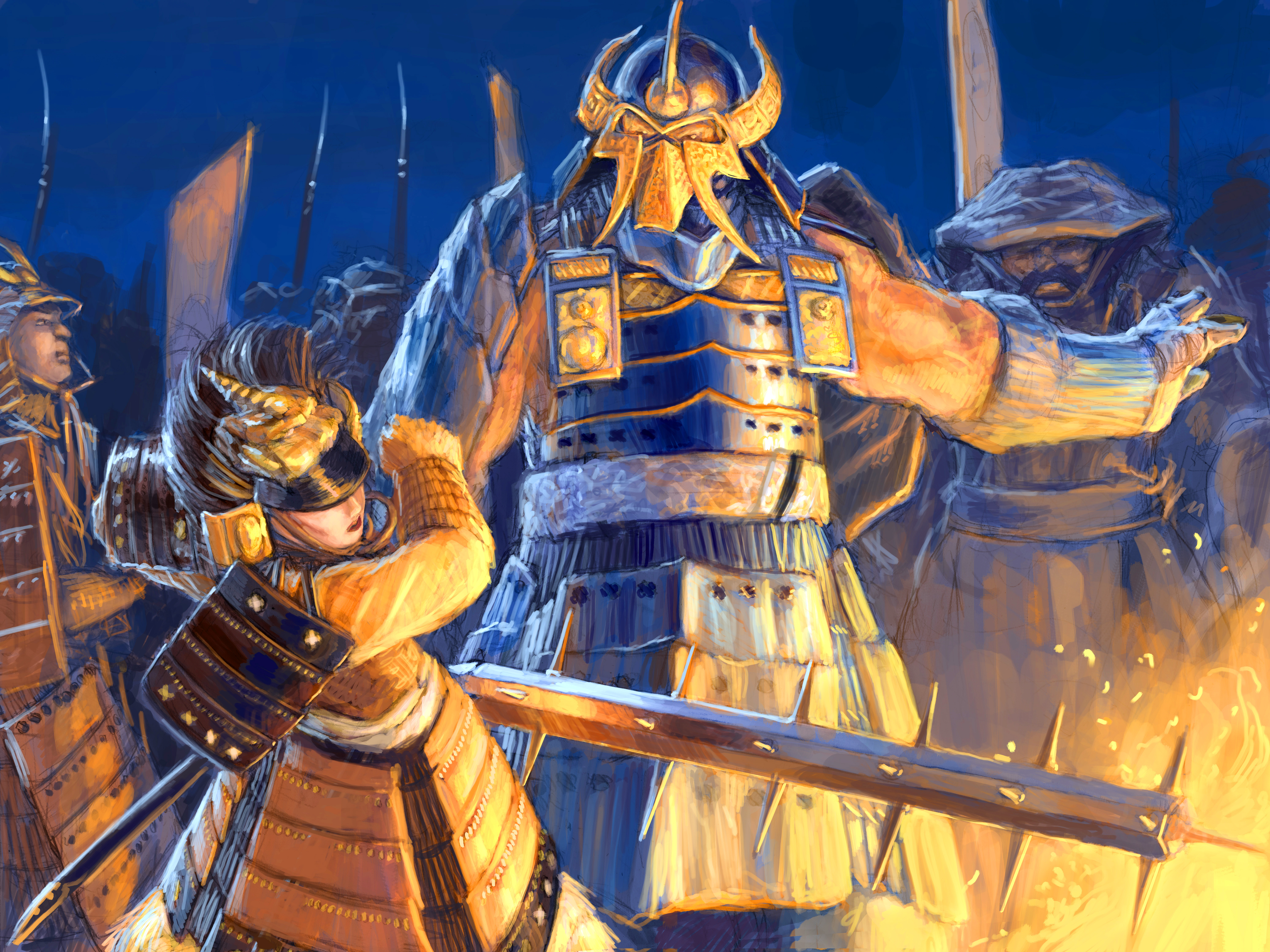 Kisada sent many members of the Kaiu family to the southern islands of the Mantis Clan. [40] Kaiu Suman was in charge of building a Crab fleet there, [41] to be used for Crab sea deployment to the shores of Otosan Uchi. Kisada loaded his army onto the war barges and proceeded to sail along the coast to the Imperial Palace. [42] Hiruma Scouts were sent near the shores of the coastline between the Crab lands and Otosan Uchi. They set fires during the night, allowing the koutetsukan to determine the position of the coast, sailing until they reached Golden Sun Bay [43] in the Month of the Ox. [44]