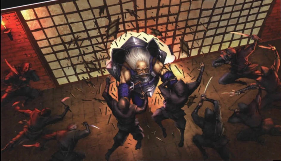 In the Month of the Hare of 1128, [45] believing the Emperor was dying, the Crab stormed Otosan Uchi to place Kisada on the throne. Instead, they found Fu Leng had possessed Hantei XXXIX, [46] who had killed his own guards, including the Hidden Guard. Kisada, who wore Ketsuen and wielded Chikara, could do nothing to stop the Uncanny Speed of the Dark Kami, [47] who mortally wounded Kisada, lodging Akkuai-uo, the Ancestral Sword of the Hantei, in his gut. [48] The Crab army was forced to retreat from the capital as Yakamo pulled his father from the palace through the tunnels below the Imperial Palace, guided by a servant of Kachiko. [49] The Shadowlands Horde turned on its Crab allies, who fled by land and sea. The mad shugenja Yogo Junzo was allowed by the Emperor to enter the Forbidden Palace. [45]