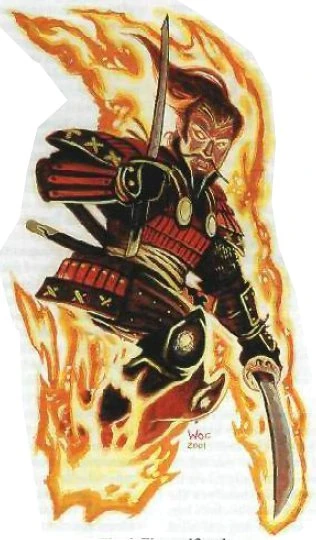 Legion of Flame was the specially trained Shiba legion that guarded the Firestorm Legion, [1] an idea first posited by Isawa Tadaka during the Clan War. [2] They wore an armor designed by the shugenja they protected. [3]