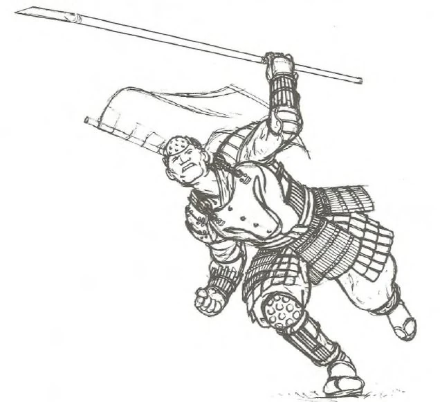 Some believed that the spearmen were formed because the Kami Akodo, who was a skilled archer, considered the bow to be a weapon for hunting rather than warfare. Other said that they were formed after Akodo lost an eye, a wound that limited his ability to use a bow. It would provide the Clan with ranged attack support in battle, but without using the bow that would remind their lord of his loss. [1] The tribal warriors who followed Akodo were particularly skilled in the ways of the spear, and these spearmen formed the backbone of the Lion armies during the First War. Years later Matsu Shujo, one of Lady Matsu’s grandsons, organized their training and founded their first dojo. [2]