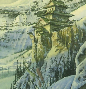The castle was built in the year 774 to serve as a winter residence for the Mirumoto Daimyo, a man who was the first Daimyo to have studied as a Mirumoto Taoist Swordsman. Raised with the philosophy of improving oneself by overcoming adversity, the daimyo demanded the castle be built in the coldest and most inhospitable part of the Mirumoto Provinces. [3]