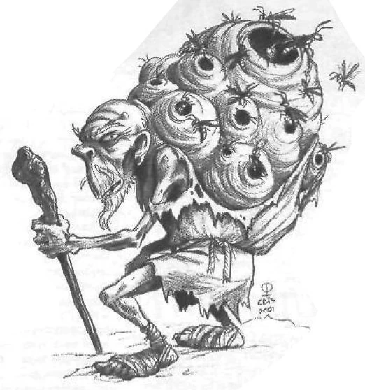 Obake were men who have been vile and hateful, and somehow managed to cheat death. They began to change, their flesh attracted wasps, which burrowed into their backs and formed bulbous hives. [1]
