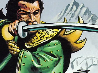During the Clan Wars, by pure chance Sanzo fell in with a group of others outcast by circumstance --including Miya Yumi and the mysterious Koan. [6] Yumi was trying to uncover the treachery of the Miya Daimyo and her cousin, Miya Satoshi. After visiting Yumi's uncle, the deposed and imprisoned Miya Yoto, [7] they moved to Kyuden Ashinagabachi, where the Wasp Clan Champion Tsuruchi commanded Ashinagabachi Ichiro to guide them to Traitor's Grove. Yumi was searching for Kenshin's Helm, a cursed nemuranai. Yumi communed with Bayushi Tesaguri, who used to be in possession of the helm, and whose spirit was the first to be bound to the grove. In 1127 they moved to the Phoenix lands, hoping to cross Beiden Pass undetected, as Yumi believed there were enemies looking for her. Kenshin's Helm was hidden within the Phoenix lands, in the possession of one of the greater spawn of Uragirimono, another of the humans cursed by the nemuranai. [8] Tesaguri had said that it was hidden at Doro Owari Mura and that Yogo Junzo was seeking it. [9] The nemuranai had been hidden in a cave by Shosuro Hametsu alongside the 11th Black Scroll, the Doom of Fu Leng, but both items had been stolen by Uragirimono. [10] Traveling and fighting beside them, Sanzo learned some small part of what it meant to be a hero and helped to prevent a terrible tragedy from befalling the Empire. [11] Still, he never forgave himself for his failure long ago. For years he chased death with a blind fury, never relenting against the creatures of the Shadowlands. [4]