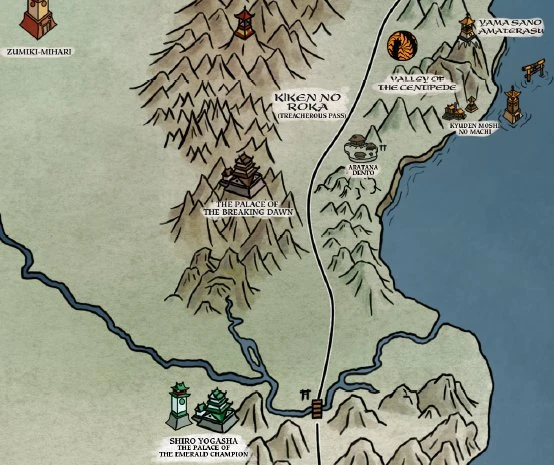 The Palace of the Breaking Dawn was built by the followers of a ronin who had been cast out from a Great Clan, decades after his death, as a continuation of the legacy he had started with Sunrise Keep. Rarely seen by outsiders, it was hidden in the high peaks of the Mountains of Regret, [1] close to the Phoenix but outside their borders. [2]