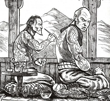 Kokujin, the mad Ise Zumi, the Prophet of the Dark Lotus, used tattoos in his wicked monastic order, the Order of Kokujin Tattoos. [15]