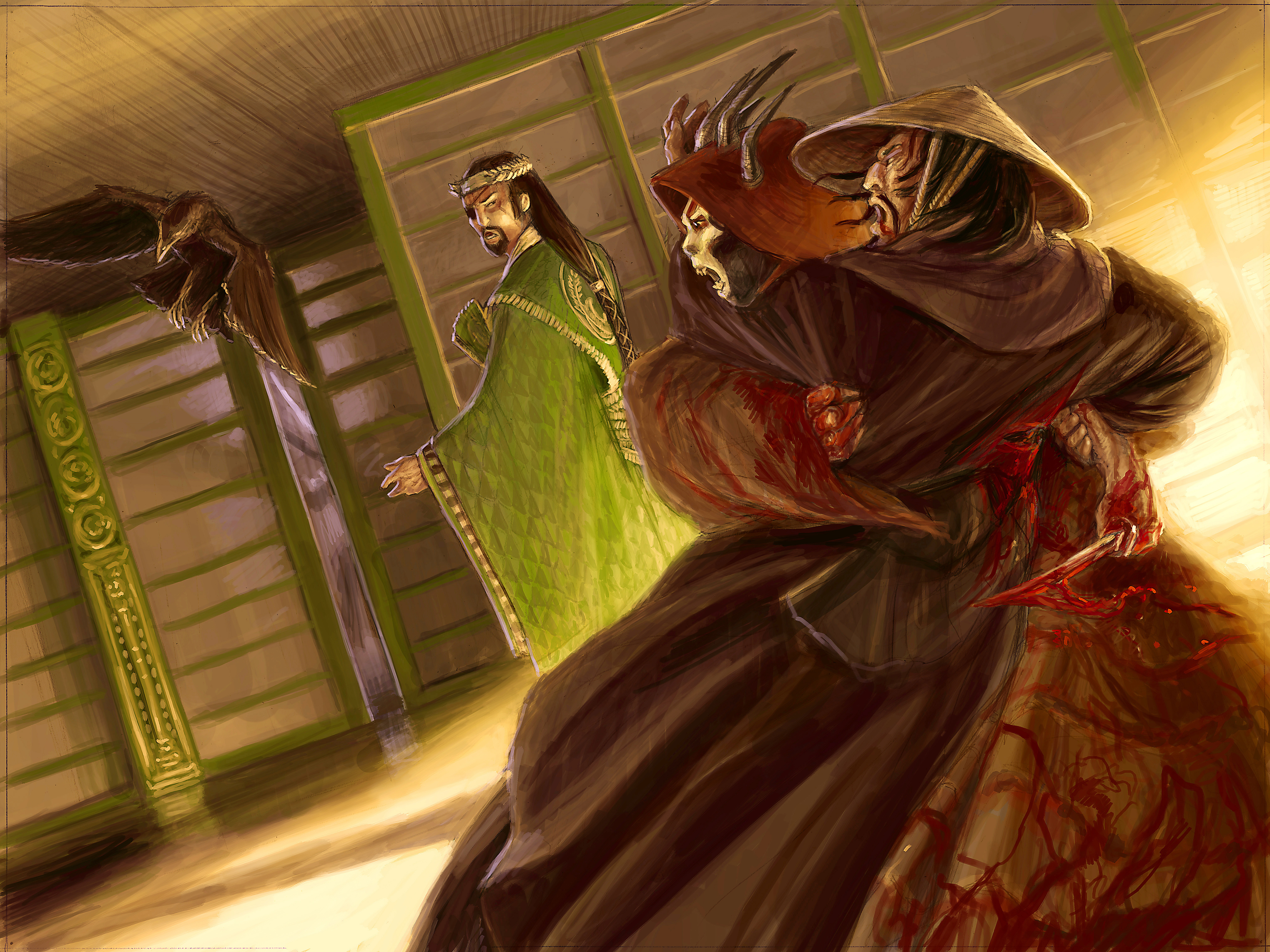 Naseru revealed to the group that their mission was to investigate the murders of several returned spirits from Oblivion's Gate. The murders included Mirumoto Tokeru, Isawa Ijime and Gusai. Kakau revealed that he had met Gusai in 1158 in Ryoko Owari Toshi. When Kakau met Gusai in the House of Plum Blossom, Gusai was assassinated by a murderer who blended in and out of shadows. Miya Shoin was put in charge of the group, which Chieh objected to. [29]