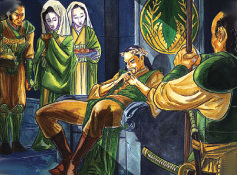 Naseru had lost the faith in his destiny as Emperor. He had come to accept that the Empire viewed him as a villain and a manipulator. The Anvil no longer desired the throne, for him no longer felt he could obtain it. Naseru hoped that Kaneka would come to destroy him, discredited the Shogun so greatly that their sister Tsudao would gain the throne. He began to write his will to allocate all his belongings for Tsudao's use upon his death, but his yojimbo Isie gave her counsel: to bring peace among his siblings and end the conflict, to forge a new Empire to do Toturi's spirit proud. Naseru tore in two the papers he wrote, and raised his heart. [42]