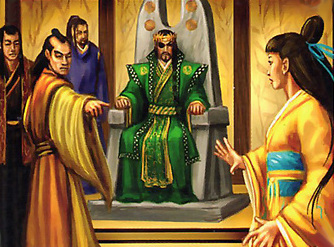 Hachi's right hand, Bayushi Norachai played a gambit with the Anvil after the events that had taken place regarding the Yasuki lands. Akodo Kaneka claim, recently discovered as illegal, had resulted in a non-lethal duel between Kaneka and Hachi. Norachai asked the Imperial Court for Naseru's support, beating the Anvil at his own game and manipulating the perception of others. By speaking in Hachi's favor, Naseru would seem to be supporting a shamed and incompetent Emerald Champion, but by speaking against him he would no longer appear to be controlling Hachi. Naseru decided for the latter, increasing Hachi's shame but dispelling the common perception of Hachi as Naseru's pawn.[34]