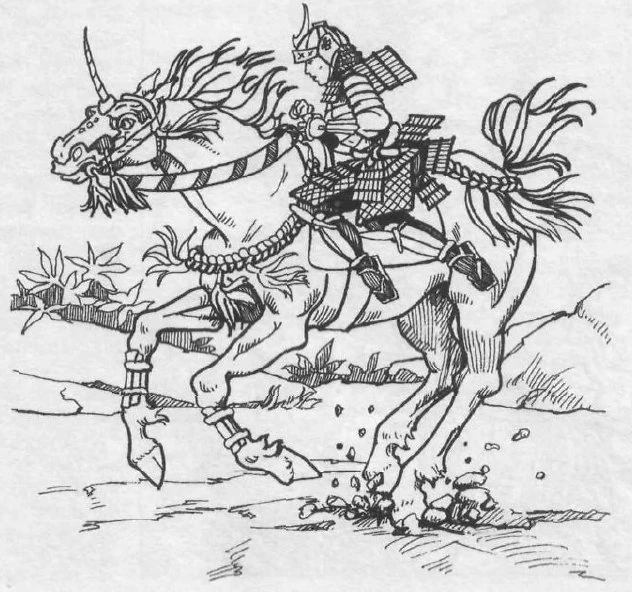 These highly valued horses were only bred for a select few people. The Emperor, the Unicorn Clan, select family Daimyo and for the Battle Maidens who rode them into combat. [1]