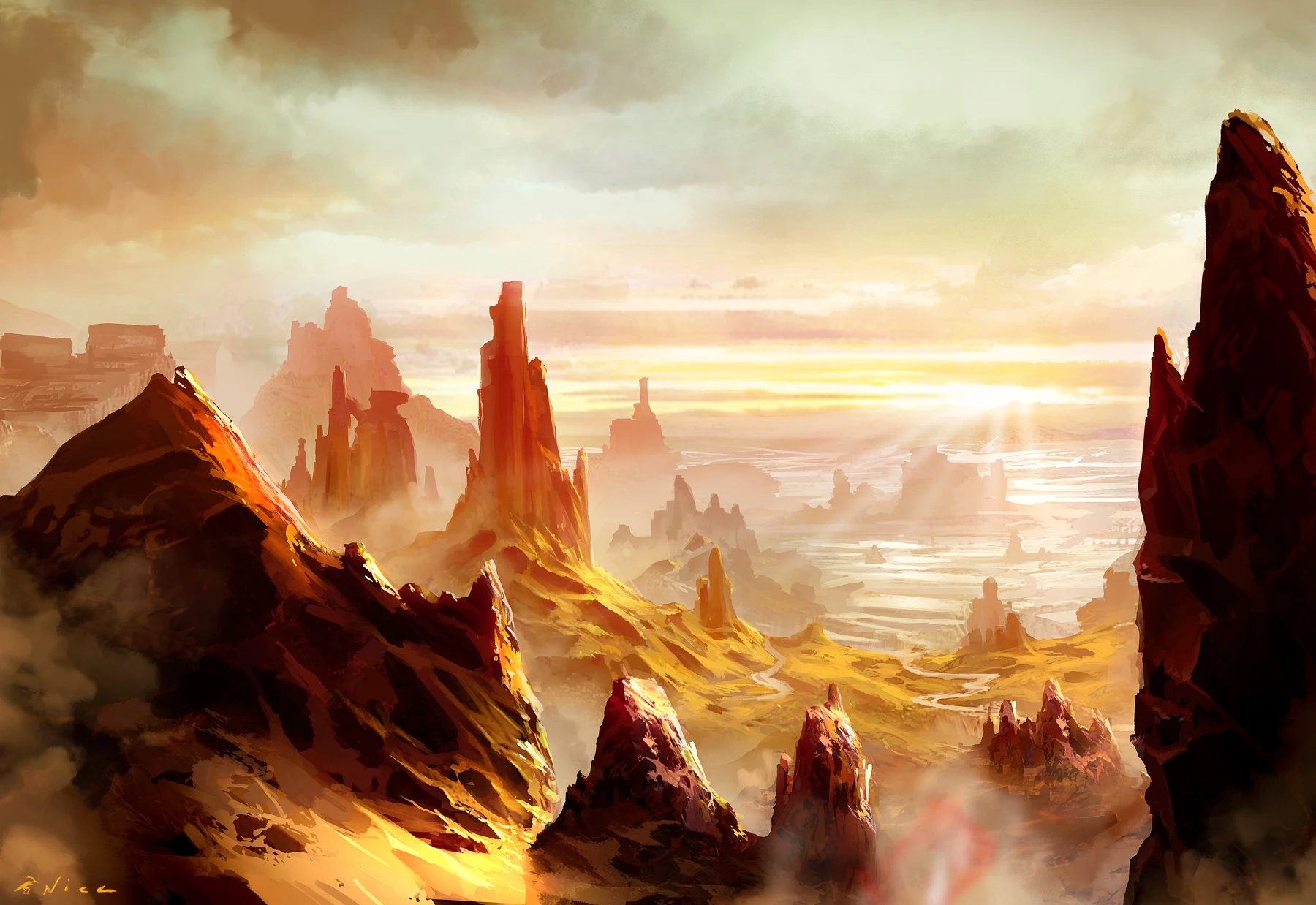 Journey's End Keep marked the border between the Wastes and the former Ivory Kingdoms. [6] The Western Wastes was the only path from the Emerald Empire to the Colonies. Unicorn caravans crossed it, toward the Second City. Raiders used to attack them in the wastes. [5] The Mantis Clan viewed the whole of the Colonies as their domain, and began seeking a northern route to distant Medinaat al-Salaam. [7]
